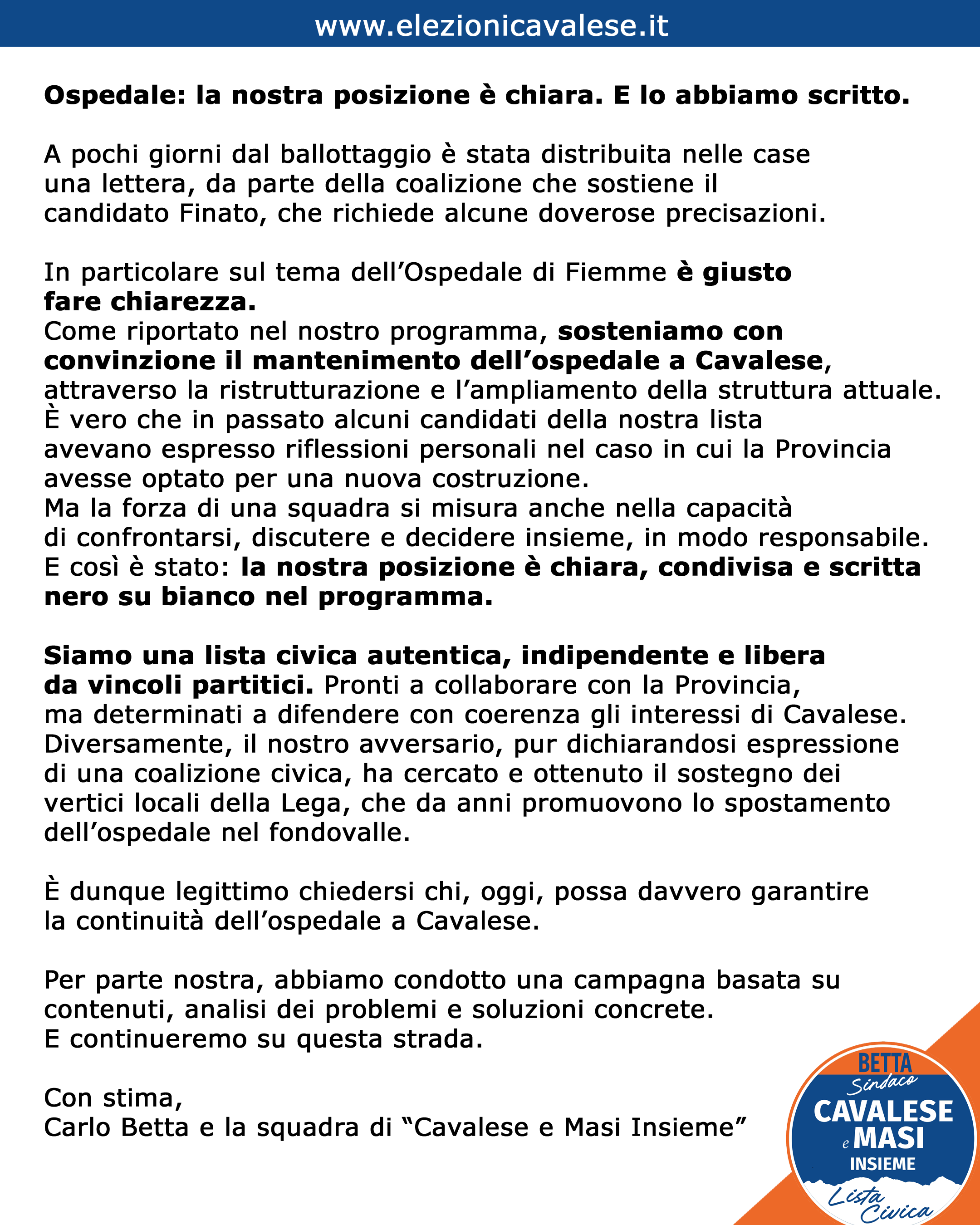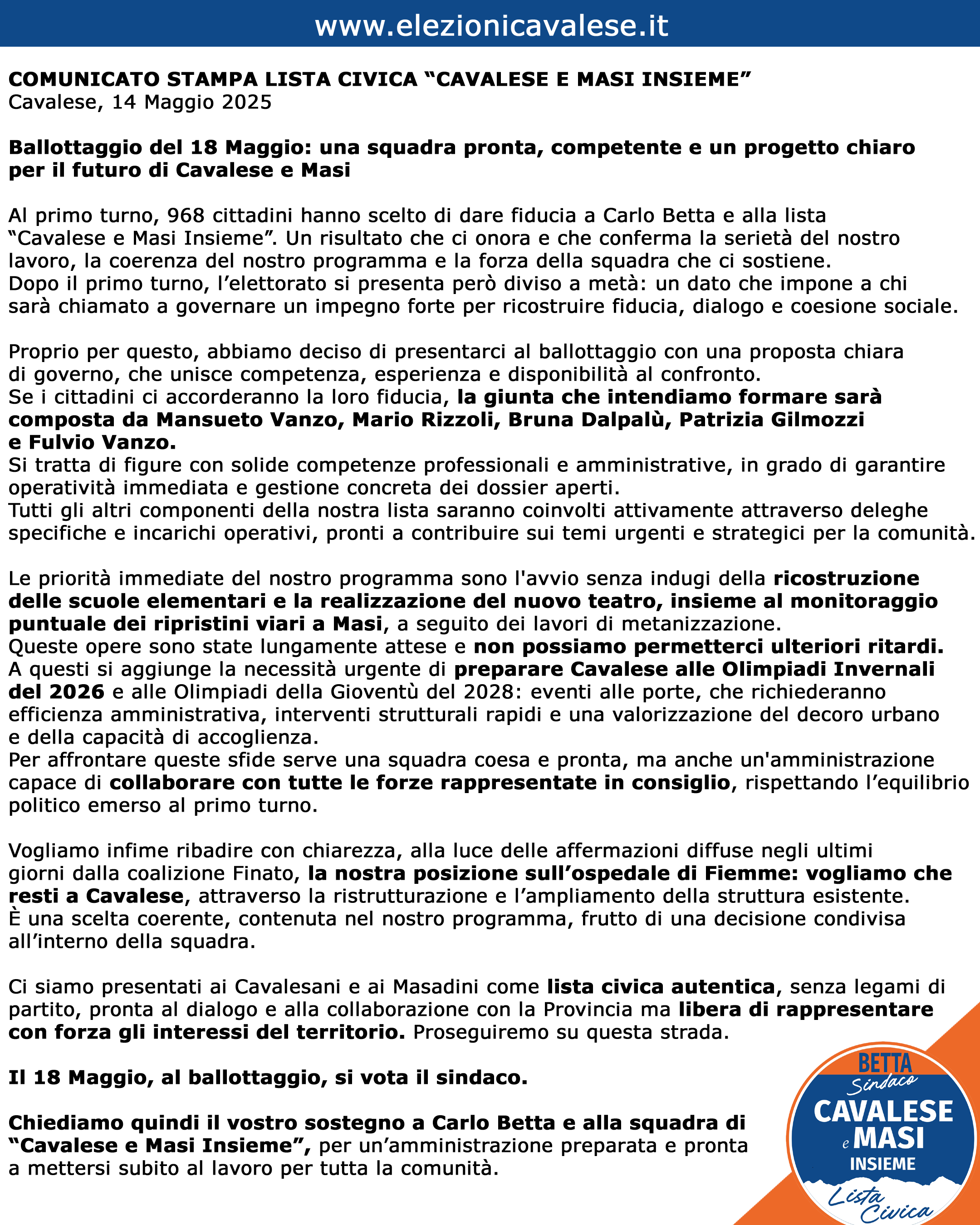 candidato sindaco Carlo Betta per Cavalese 18 Maggio 2025